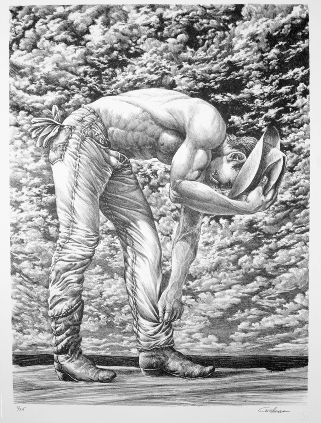 Howe moved to New York in the early nineteen-fifties to study music but soon realized that his calling was the painted canvas. His friend and the art historian Edward Lucie-Smith encouraged Howe to paint what he knew. What Howe knew was the cowboy culture of Southern New Mexico. He was raised in Hot Springs, now Truth or Consequences, New Mexico. As Howe was learning to paint, he fell in love with the style of the École des Beaux Arts. He also realized that the style of the École gave him a format to explore the male form at a time of very repressive attitudes about the LGBTQ+ community and to still be considered a serious artist.