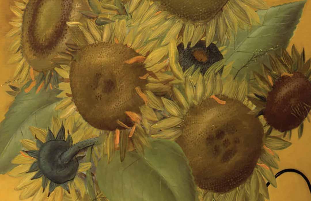 Here, in “Girasoles,” van Gogh’s sunflowers are no different. Botero has taken the familiar, iconic shapes of the flowers and enlarged them—and the vase that contains them—so that while the source is recognizable, it is made totally new, calling on viewers to give both the original image and Botero’s interpretation further consideration.