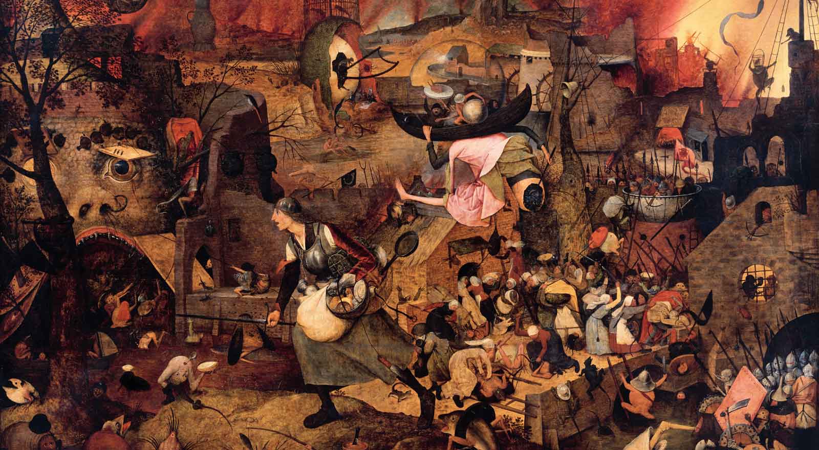 A giant woman dressed in armor, wielding a sword and, incongruously, a frying-pan, strides past the jaws of hell at the head of a band of plundering women in Pieter Bruegel the Elder’s 1563 painting Dulle Griet, or Mad Meg. As with many of Bruegel’s works, this enigmatic picture is subject to a range of diverse interpretations. Is it an early form of feminism, a humorous reversal of the rigid gender roles in 16th-century Flanders? That’s one theory.