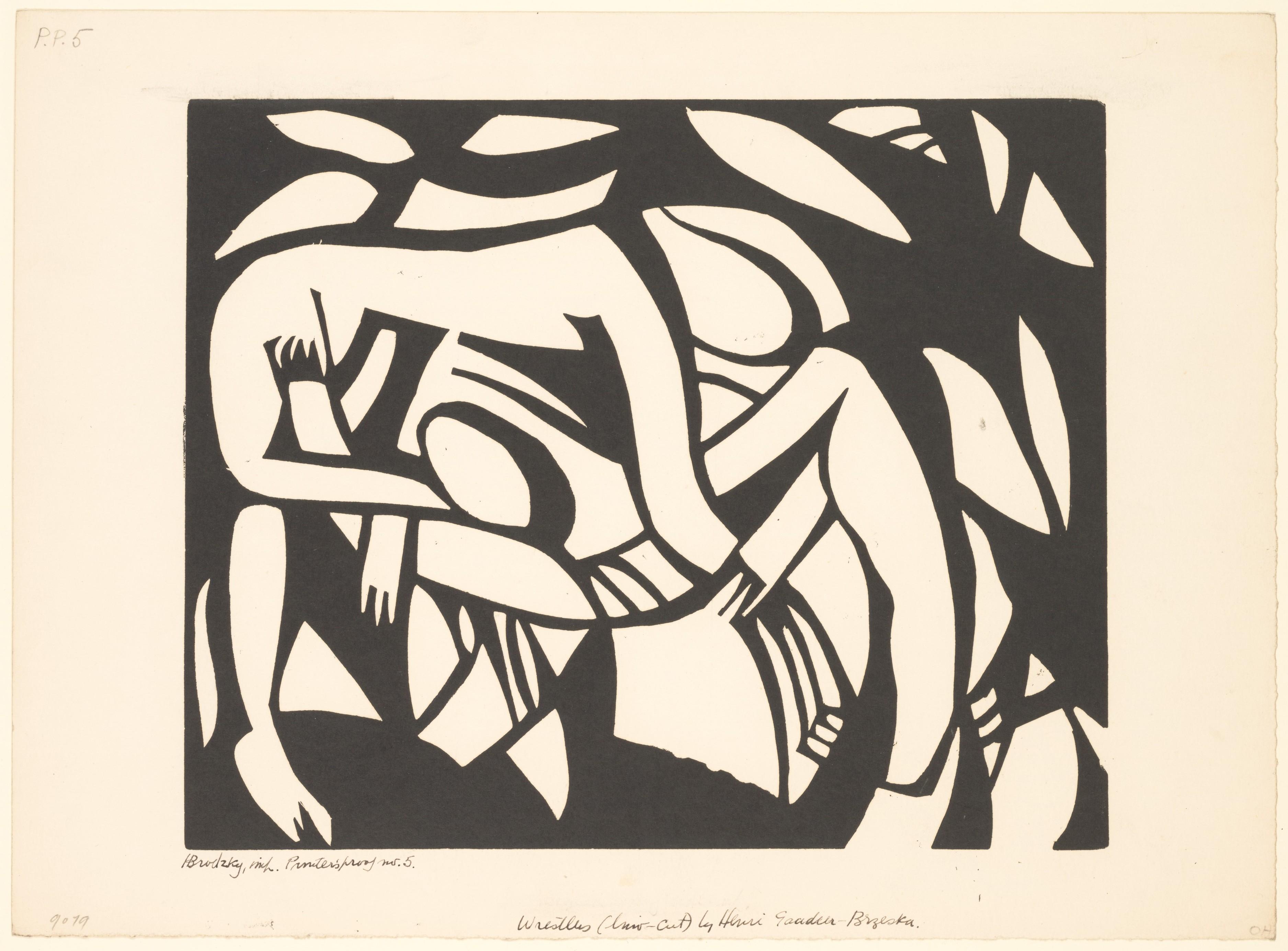 Henri Gaudier-Brzeska (1891-1915), Wrestlers, c. 1914. Linocut.