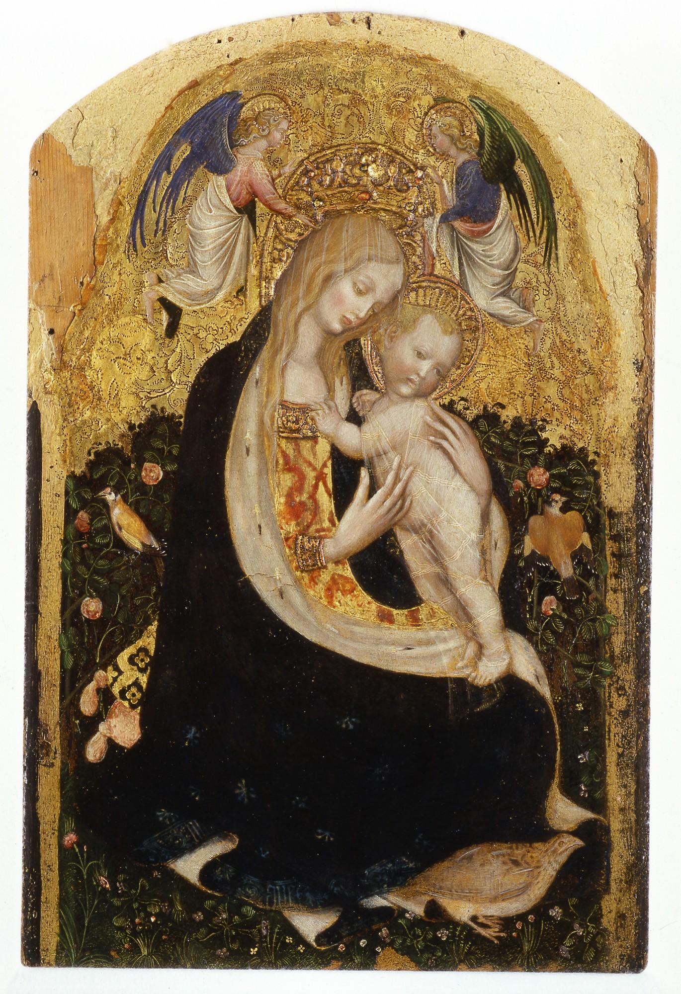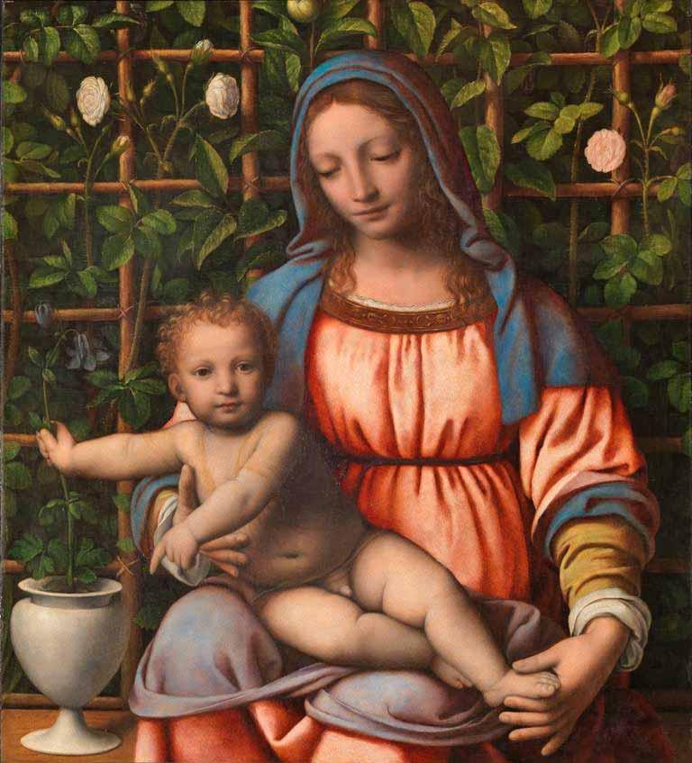 The Madonna of the Quail is one of the most fascinating examples of the artistic genre called Hortus Conclusus, a Latin term meaning “enclosed garden.” The term hortus conclusus appears in the Bible’s Song of Songs (also known as Song of Solomon) 4:12 which reads: “Hortus conclusus soror mea, sponsa, hortus conclusus, fons signatus" (A garden enclosed is my sister, my spouse; a garden enclosed, a fountain sealed up). In time, the song that had been written to celebrate the marriage of King Solomon became an allegory of the union between Christ and the Church. Father Antonio Scattolini, a Salesian priest and art historian, explains that “along the centuries, the biblical image of the hortus was also applied to the theological interpretation of Mary’s virginity and the dogma of the incarnation of Christ.”