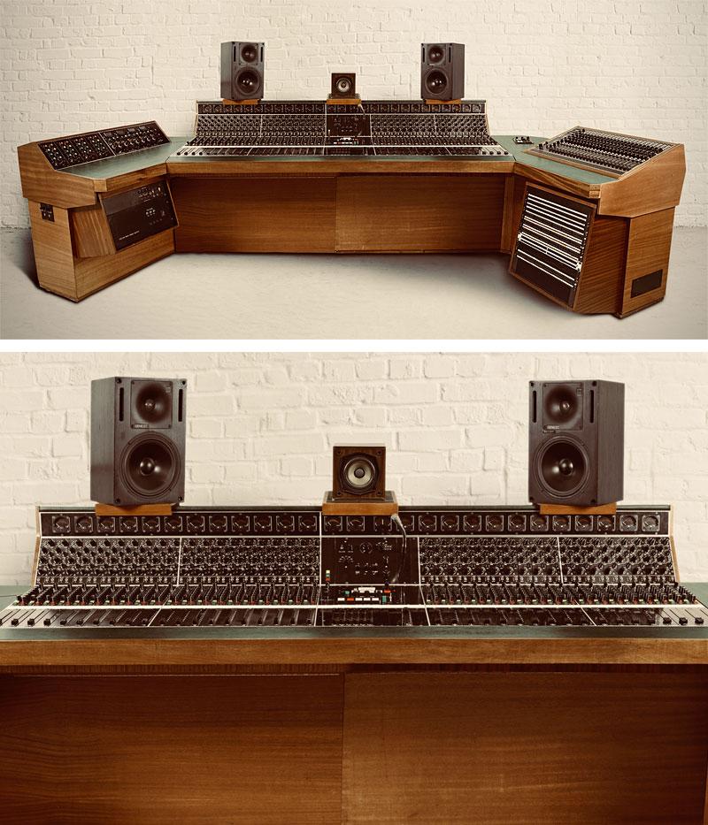 Dubbed the HeliosCentric Helios console, it unites two Helios machines. The center comprises parts of both, but the left side consists of the Island Records Basing Street Studio 2 Helios Console, used by Led Zeppelin to record songs for Album IV, including Stairway to Heaven, and by Bob Marley & The Wailers for their albums Burnin’ and Catch a Fire. The right side first belonged to Alvin Lee’s Space Studios, and served the needs of George Harrison, Mick Fleetwood, Ron Wood, and many others.