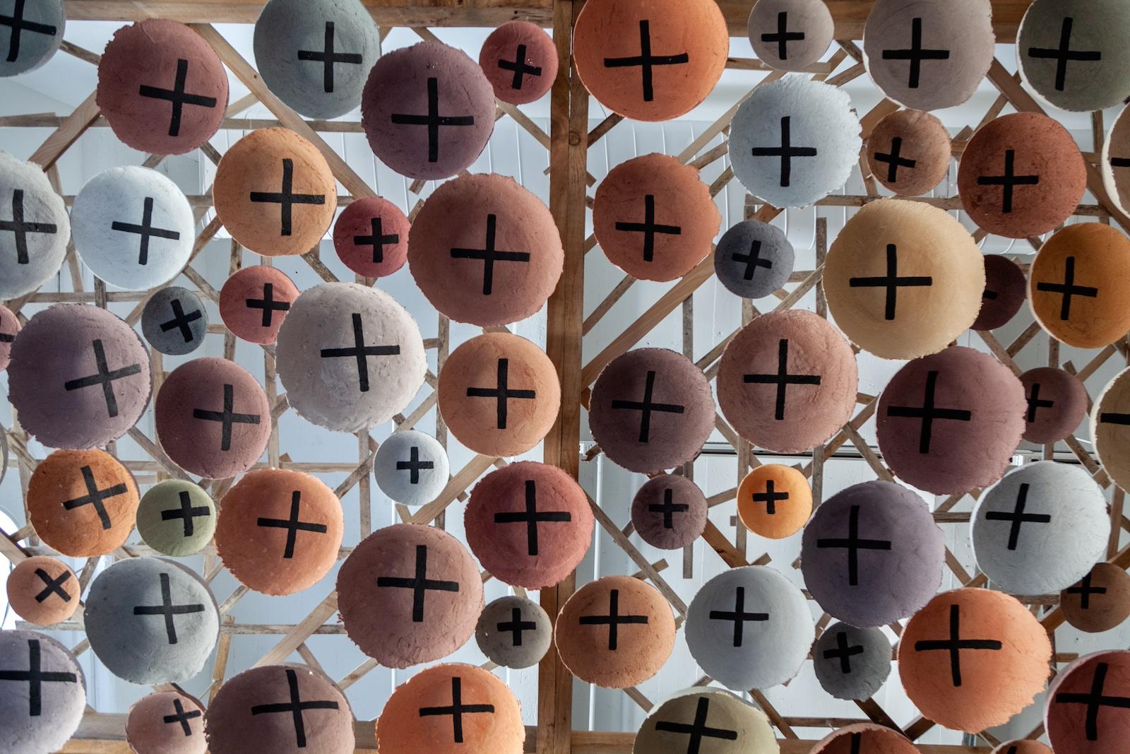 “I have to be really careful about using religious iconography because of the extractive nature of colonization and how it affected my community,” shares Simpson, who comes from a very conservative, traditional background. The artist honors the importance of continued spiritual preservation and agrees that some things don't belong in the outside world.