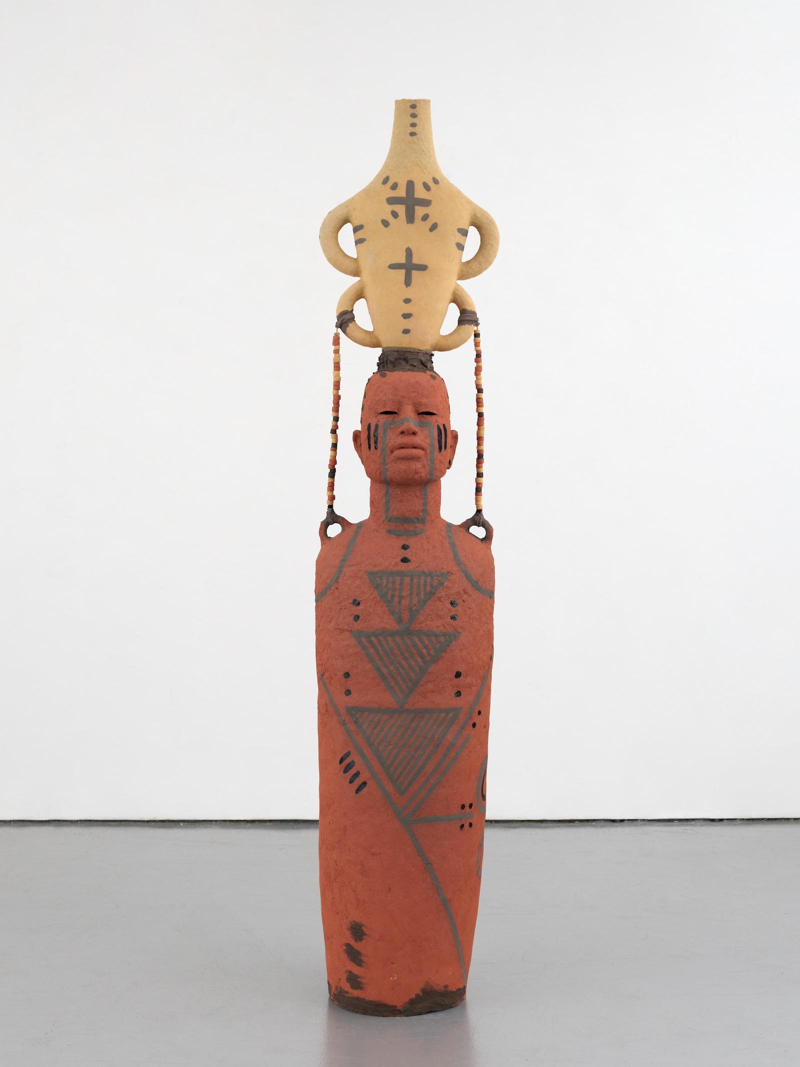 Rose B. Simpson, Vital Organ: Heart, 2022 clay, twine, grout, glaze, 90 3/4 x 18 x 13 1/2 inches